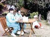 これほど近くで小西さんを見た事がないので,サングラスの中の目をのぞき込んでみたり(笑).また,福間船員の目をじっと見ていたら,思わず「ぷっ」と吹き出していた.知ってる顔を見るとテレるのか?(笑) 萱沼君は小瓶の中にピンクの錠剤の欠片がくっついていることを平沢船長に指摘され,「キミには(水を)やらん」と言われたそうだ(笑).小瓶を掃除して直接平沢船長に水をもらいに行くと,もう一回小西さんにお清めしてもらえと叱られる萱沼君(笑). 徘徊するBIT-MEMON.そしてファンの集い 夕食を終え,ホテルに戻って一休みしていると,電話が鳴り響いた.同班の団員からでBIT-MEMONと一緒にP-3名が各部屋へ現れているようなので,カメラの準備をしておけとのこと(笑).しかし結局彼らは現れなかった. 後に聞くところによると,時間が無くて全室は回れなかったらしい.また,ストーリー上はBIT-MEMONはP-と敵対するキャラなので,一緒に回るというのはご愛敬か?それともBIT-MEMONを追いかけるP-というシチュエーションなのか?実際に見てないのでなんとも(笑). 10:00pmからはファンの集いその2.団員からの質問(旅行のストーリーは対象外)を中心に進む.萱沼君が中野団長の司会をサポートするが,ノリがよく笑いも十分にとっていた.彼は万国点検隊には欠かせない存在である(笑).ご苦労様でした. 3日目写真 ![]() この方がフルーツ売りの女性.この日は暑かったので,早く探さないと帰っちゃうのだ(笑). ![]() カフェ・ロータスにて. 蓮池の向こうにP-が見える. ![]() 「キミにはやらん」 「え?!」 ![]() 小瓶にこびりついたピンクの錠剤のかけらを取って,再度水をもらいに行く萱沼君. ![]() やっともらえた(笑). ![]() 小西さん側から撮影. ![]() 福間さん側から,小西さんが映るように撮影. | ||||||||||||||||||||||||||||||||||||||||||||||||||||||||||||||