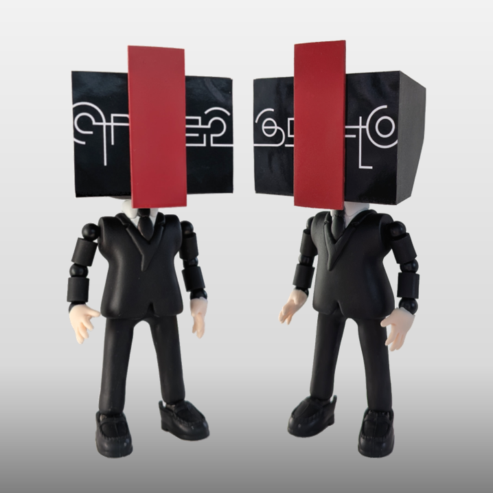 #03 バーコード 会然TREK 2K20 (2020/2, 2020/4) タオの3つのエコー (2025/4 中国, 2026/4 東京) ![]() ボディは黒会人と共用で、箱型頭部のみを制作しました。 比較的簡単にできたのですが、他のフィギュアと並べると頭部が微妙に大きく感じ、スケールダウンして再制作したところ、今度は前後が微妙に薄くなってしまい再々制作。 単純な形ながら、意外にもサイズ感で苦戦しました。 #04 ルベダリアン 24曼荼羅 (2021/4) FUJI ROCK 21 (2021/8) ![]() ボディも頭部もバーコードと共用のため、制作したのは顔面のみですが、赤の塗料を切らしていたため塗装完了は最後になりました。 顔面の赤いパーツは、実物はかなり長いのですが、他のフィギュアのサイズ感やシリーズのテイストに合わせて短い形にしています。 #05 改定評議会 ZCON (2022/3) ![]() ボディは黒会人とほぼ共用。首周りのみタートルネックと差し替えています。 頭部はバランスが難しく、悩ましいデザインだったため先送りし、制作着手は一番最後になりました。 マスクと頭部の板のサイズを変えたり、位置を変えたりと、手探りで作ってみたところ、意外と良い感じにまとまりました。 結構気に入っています。 |