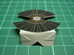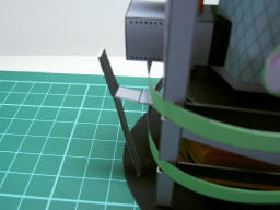 のりしろの短い方を外側にして、台に差し込み、STEP2の最初に作ったレバーと接着します。黒い取っ手に黒い取っ手を重ねるように接着します。