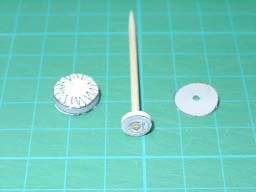 陰陽マークのついたつまようじに,プロペラ,上記の円柱パーツを通します.