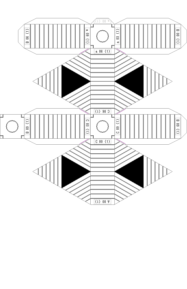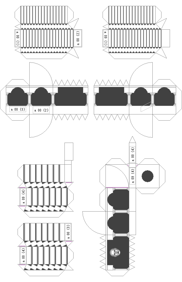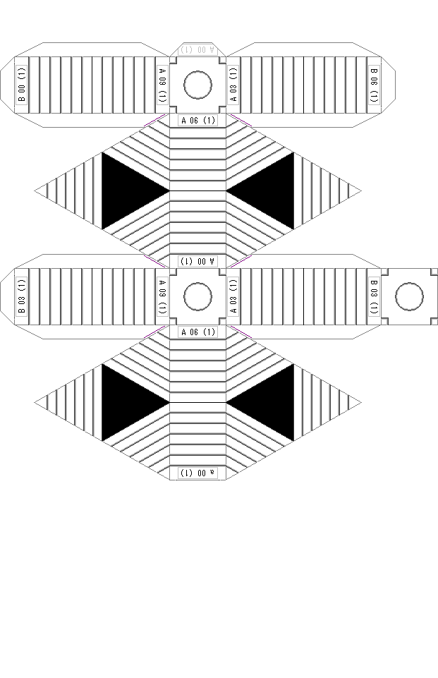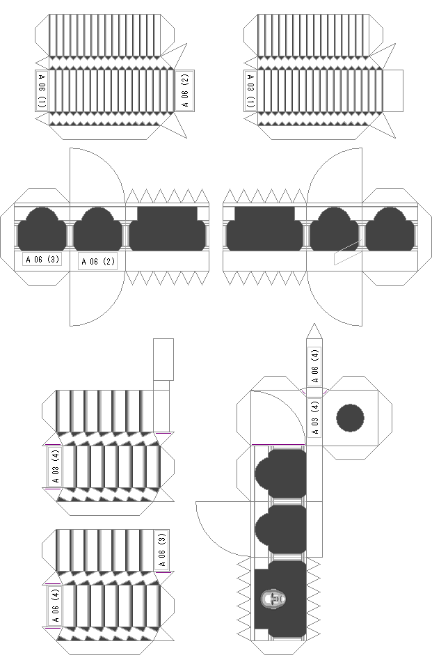 型紙は厚さ0.2mm程度の「厚手」の紙をお勧めします。大手電気店などのプリンタ用紙売場で入手できます。仕上がりも普通紙よりもプリンタ専用紙の方が綺麗です。 | ||||||||||||||||||||||